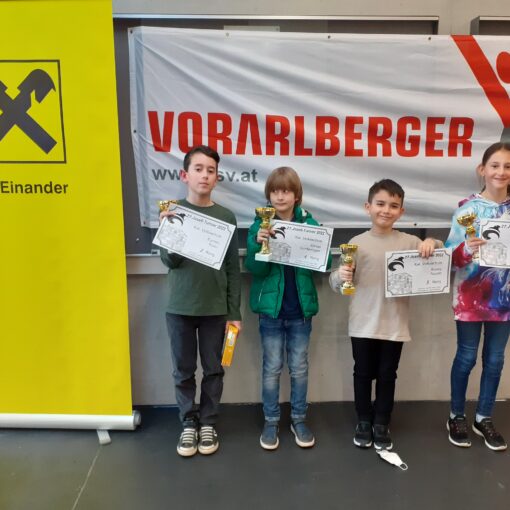 Der erste Tag war aus Vorarlberger Sicht der Erfolgreichste. Gleich drei Mädchen erkämpfen sich in ihrer Kategorie die Silbermedaille. Die Kategorien U08, U10 und U12 wurden wie auch die Kategorien U14, U16 und U18 in einem gemeinsamen Turnier ausgetragen. Bei den Jüngsten Mädchen in der U08-Kategorie schnappt sich die Staatsmeisterin im Standardschach Luisa Lins vom Sk Hohenems die Silbermedaille. Ebenso Silber gehen an Yihan Wang vom Sk Dornbirn in der U12-Kategorie sowie Leefke Giselbrecht vom Sk Bregenz in der U14-Kategorie.